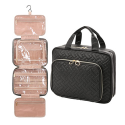 Qualidade Premium Grande Couro Listrado Pendurado Gancho Viagem para Saco Cosmético Impermeável Portable Zipper Encerramento Moda Homens