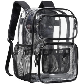Üniversite ve iş için Polyester astar şeffaf sırt çantası ile büyük şeffaf ağır PVC sırt çantası